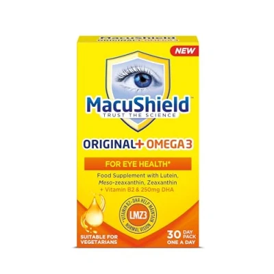 UK No.1: MacuShield is the UK’s leading eye health supplement brand* Supplement for eye health: MacuShield Original+ Omega 3 is an eye health food supplement** containing Lutein, Meso-zeaxanthin and Zeaxanthin, as well as Omega 3 and Vitamin B2, which are each proven to maintain normal vision. Scientifically proven to help maintain normal vision**: Contains 250mg DHA and Vitamin B2 which each help maintain normal vision. Combines all three macula carotenoids: MacuShield Original+ Omega 3 combines all three macula carotenoids - lutein (10 mg), meso-zeaxanthin (10 mg) and zeaxanthin (2 mg) - in a specific 10:10:2 ratio. Suitable for vegetarians and vegans: Suitable for vegetarians, our Omega-3 is sourced from algal oil, which is a sustainable plant-based alternative to fish oil.