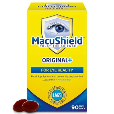 UK’S No.1eye health supplement brand* SCIENTIFICALLY PROVEN TO HELP SUPPORT EYE HEALTH* *MacuShield Original Plus contains vitamin: B2 (riboflavin) which contributes to the maintenance of normal vision HELPS TO MAINTAIN NORMAL VISION- contains vitamin B2 which is proven to help maintain normal vision. CONTAINS ALL THREE MACULAR CAROTENOIDS THAT ARE FOUND IN THE EYE- the antioxidants plus a targeted blend of nutrients such as vitamin B2 which is proven to help maintain normal vision. DEVELOPED WITH LEADING EYE EXPERTS: A simple step to help care for your vision* developed with leading eye experts. WHAT ARE MACULAR CAROTENOIDS? Macular carotenoids are three nutrients: Lutein, Zeaxanthin and Meso-Zeaxanthin which are found at the back of the eye, at the macula, where they form the macular pigment (yellow colour). Meso-zeaxanthin is particularly concentrated at the centre of this pigment. The macula is a specialist parts of the eye that is responsible for detailed, central vision. EASY TO TAKE, ONE-A-DAY CAPSULE: All you need in just one capsule a day, include as part of your daily routine. UNIQUE RANGE: MacuShield offers a unique range including Chewable, Vegetarian, Omega 3 and Gold formulas, you can find the right eye supplement product for you.
