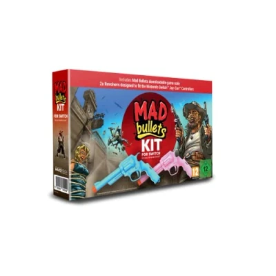 Mad Bullets for Switch Kit includes Mad Bullets downloadable game code PLUS 2 x revolvers designed to fit the Nintendo Switch Joy-Con Controllers This whacky shooter will put your reflexes and laughing muscles to an intensive test Enhance your gameplay with the Mad Bullets Kit which includes 2 revolver accessories to put your shooting skills to the test The EASIEST shooter controls on any platform - ever! The CRAZIEST characters since... well, that’s classified! The MADDEST bullets in gaming history! There are 3 locations 60 levels 3 minigames about 200 missions trendy dubstep music fully destroyable environmental objects all mixed in a frantic shooter, Platforms: Nintendo Switch