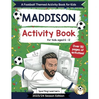 Maddison Activity Book For Kids Aged 6 12: Football Themed Word searches, Mazes, Puzzles, Colouring in, Trivia