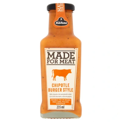 Kuhne Made for Meat Chipotle Sauce 235ml is a spicy and tangy burger-style sauce made with chipotle chilli, gherkin relish, onions, and smoked paprika. Suitable for vegetarians, it contains no preservatives or artificial colours, and is perfect for meat, fish, or veggies.