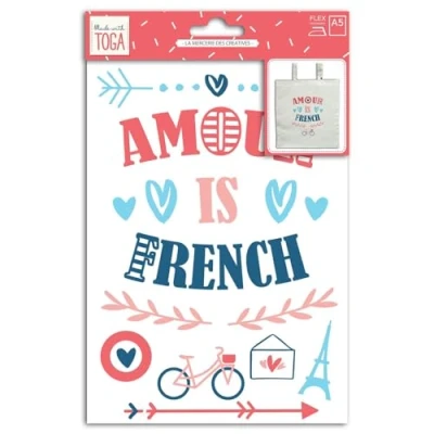 Made with Toga Textile Transfer 15 x 21 cm Love is French, Multi Colour, Not Applicable