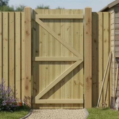 DESIGN - Interlocking tongue & groove pedestrian gate cladded for durability with contemporary appearance, providing both strength and a classic timber finish featuring a modern flat top, suitable for residential entrances. DIMENSIONS - Custom made-to-measure gate available within the following sizes - Height: up to a MAXIMUM of 180cm x Width: up to a MAXIMUM of 120cm. CONSTRUCTION - Manufactured to be semi-braced, measuring approx. 70mm x 34mm, traditionally made for reliable strength and stability, and cladded with 12mm interlocking tongue & groove boards for a smooth, secure, and durable finish. CUSTOM MADE SERVICE: Please provide sizes in MILLIMETRES in the following format: (H:____mm x W:____mm). Please see our photo showing how to measure the gap for your gate to ensure accurate sizing requirements. FIXING KIT - A 450mm Ring and Suffolk latch hinge packs can be purchased alongside this gate, feel free to browse our range if you'd like to add. NATURAL TIMBER - Authentic solid wood construction means every gate showcases unique natural variations in colour and grain patterns, truly one-of-a-kind. TREATED - All timber components are tanalised and pressure treated for maximum protection against rot, decay, and harsh UK weather conditions year-round. Our products are treated with Tanalith E, green flecks may appear within the wood but will fade over time as the products weather. MADE IN UK - Handcrafted by skilled gate makers in our Shropshire factory, ensuring true British quality and craftsmanship. Discover our reviews to see why customers choose us. SUPPORT - Access our responsive UK-based customer support team ready to assist with any product questions, installation guidance, or delivery concerns promptly. DISCLAIMER - For optimal results, we recommend waiting 6-8 weeks post-installation before applying paint or additional treatments to allow proper treatment drying. Timber will always contract and expand in different weather conditions, some dimensional variation should be expected., Weight: 44.0924524 pounds, Manufacturer: PGS