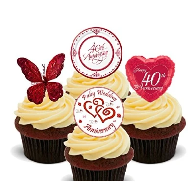 Made4You Ruby Wedding 40th Anniversary Edible Cupcake Toppers Stand up Wafer Cake Decorations (Pack of 12)