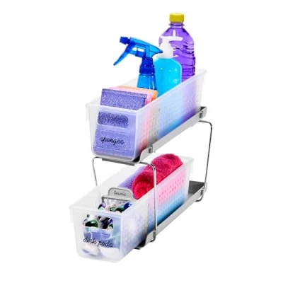 madesmart Mini Two Tier Dividers Under Sink Organizer, 2, Frost