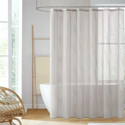 Madison Park Anna Sheers Shower Curtain, Textured Striped Accent Design, Modern Mid Century Bathroom Decor, Machine Washable, Fabric Privacy Screen 72x72, Grey