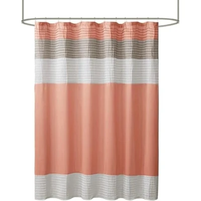 Madison Park Bathroom Shower Faux Silk Pieced Striped Modern Microfiber Bath Curtains, Polyester, Coral, 72" W x L (Pack of 1)
