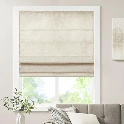Madison Park Cordless Roman Shades Fabric Privacy Single Panel Darkening, Energy Efficient, Thermal Insulated Window Blind Treatment, for Bedroom, Living Room Decor, 35x64, Como, Ivory