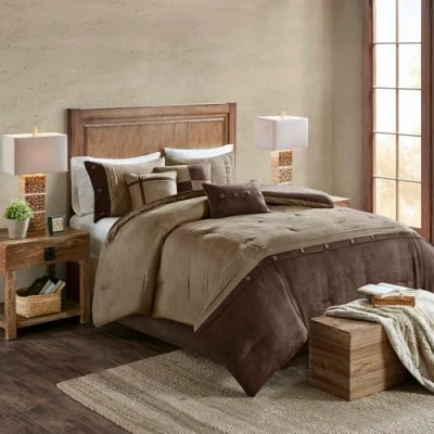 Madison Park Cozy Comforter Set, Faux Suede, Deluxe Hotel Styling, Polyester, Rustic Brown, King