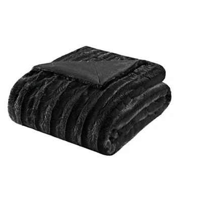Madison Park Duke Luxury Long Faux Fur Throw Premium Soft Cozy Brushed For Bed, Coach or Sofa, 50x60, Black