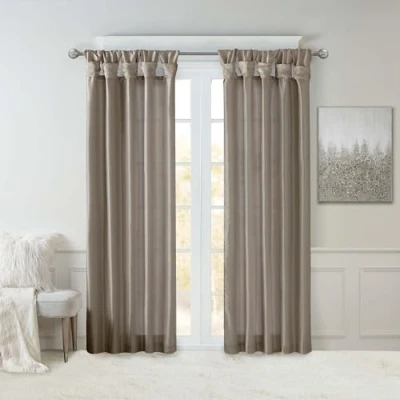 Madison Park Emilia Faux Silk Single Curtain with Privacy Lining, DIY Twist Tab Top, Window Drape for Living Room, Bedroom and Dorm, 84" L x 50" W, Pewter Brown