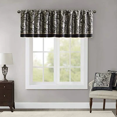 NEW & TRENDY - The Madison Park Aubrey Beaded Valance is the perfect extra touch to your decor. The alluring jacquard weave is inspired from an updated paisley motif and is woven in beautiful hues for a shimmering accent. The window valance features solid faux silk piecing and flat piping details, while delicately finished with a scalloped bottom design and intricate bead trim, creating an intriguing elegant look. For added sophistication, it comes with back tab rod pocket to fit curtain rods up to 1.25 inch in diameter. Complete the collection with coordinating window curtains and bedding set, each sold separately. PRIVACY - The living room curtain valances come with back lining for added privacy and better drapability. It also increases its ability to dim outside light coming in creating more cozy ambiance ROD POCKET - This elegant small kitchen window curtain features a rod pocket to conceal/cover the curtain rod creating a more professional tailor look; the rod pocket can fit rods up to 1.25 inch in diameter MEASUREMENT - 1 Window Valance: 50"W x 18"L CARE - Machine wash cold on gentle cycle, tumble dry on low heat, wash alone, do not bleach