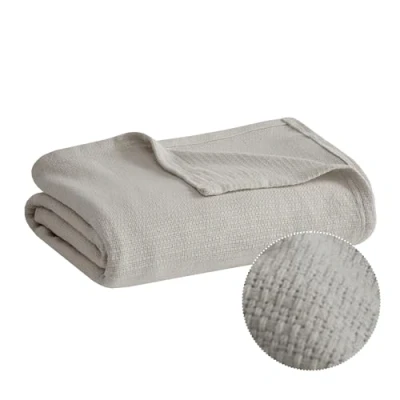Madison Park Freshspun Basketweave Luxury Cotton Blanket Grey 66x90 Twin Size Premium Soft Cozy 100% For Bed, Couch or Sofa