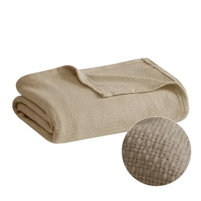 Madison Park Freshspun Basketweave Luxury Cotton Blanket Khaki 108x90 King Size Premium Soft Cozy 100% For Bed, Couch or Sofa