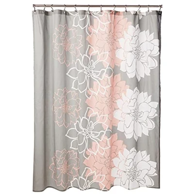 Madison Park Lola 100% Cotton Shower Curtain, Casual Large Floral Design, Modern Bathroom Decor, Machine Washable, Fabric Privacy Screen 72x72, Grey/Peach