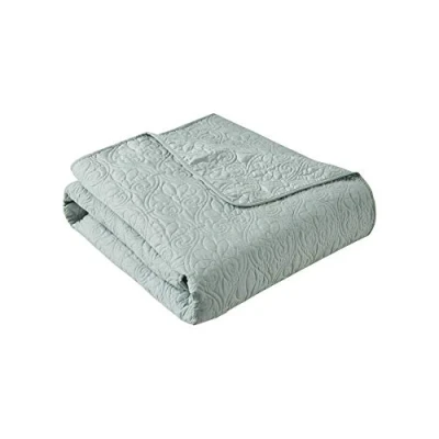 Madison Park Luxe Quilted Throw Blanket Damask Stitching Design, Cotton Filled Spread, Ultra Soft, Cozy Bedding for Living Room Couch, Sofa, Bed, 60x70, Piping Borders Seafoam