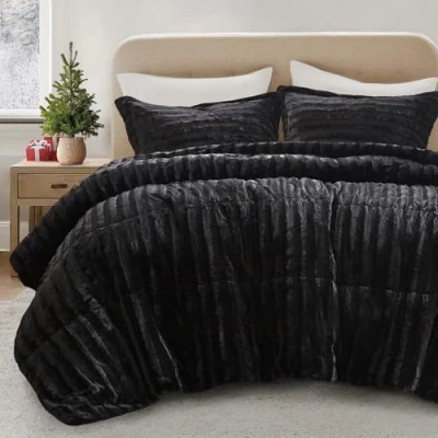 Ultra soft and cozy Plush Faux Fur fabric, looks luxury and keeps you snuggly warm Classic and Grand looking , great for your bedroom or your guest room With coordinating shams , shams with knife edge, 2" flange, 3" overlap at back Set Includes: Comforter:104x90" (1) , King Shams:20x36+2"(2) Machine wash cold, gentle cycle and separately. Do not bleach, tumble dry low. Remove promptly. Do not iron