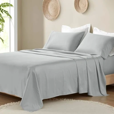Madison Park Organic Cotton Sheet Soft & Breathable 300TC Sheets, Elastic Deep Pocket Set Fits Up to 18" Mattress, All Seasons, Lightweight, 100% Bed King Grey 4 Piece