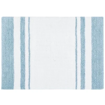 Madison Park Reversible Spa Rug 100% Cotton Striped Ultra Soft Water Fast Bath Non Slip Absorbent Quick Dry Mats for Tub, Shower Room, and Bathroom, 20"x30", Blue (MP72 6210)