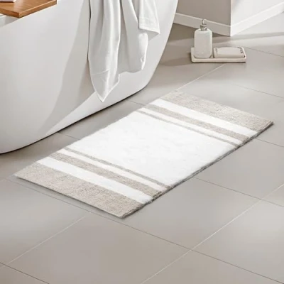 Madison Park Reversible Spa Rug 100% Cotton Striped Ultra Soft Water Fast Bath Non Slip Absorbent Quick Dry Mats for Tub, Shower Room, and Bathroom, 20x30, Taupe (Pack of 1)