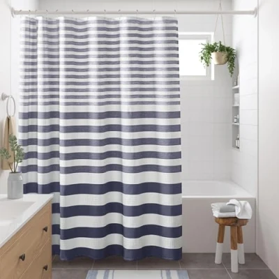 Modern Farmhouse with Ombre Style – The Madison Park Spa Waffle Shower Curtain features a textured waffle weave and a stylish ombré effect. This gradient design adds a modern touch to your bathroom décor while creating a cozy and inviting ambiance Premium Quality – This modern farmhouse shower curtain boasts a 190GSM weight and 3M Scotchgard moisture management, effectively wicking moisture to maintain a fresh look longer, ensuring effortless care Privacy and Style: The Spa Waffle farmhouse-style boho shower curtain with urban flair adds decorative charm while ensuring privacy. For best results, a shower liner is recommended. It features buttonholes for shower hooks (not included) Size Options: The shower curtain measures 72"W x 72"L and comes in various sizes to suit your needs. Enhance your bathroom aesthetic by pairing it with the coordinating Spa Cotton Bath Rug, sold separately Durable & Easy Care: Our shower curtain boasts quality stitching offers durability to withstand daily wear and tear. For easy care, simply machine wash separately in cold water on a gentle cycle and tumble dry on low heat
