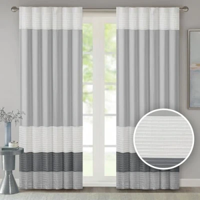 MODERN ELEGANCE – Transform your space with the chic Madison Park Amherst Window Curtain. Crafted from lustrous faux silk, it features a modern design of multicolored blocks with pintuck elegance, adding a sophisticated touch to your décor PRIVACY & ROOM DARKENING – These living room curtains feature a back lining for a room-darkening effect and enhanced privacy. They effectively block some outside light, creating a warm and inviting ambiance in your space BACK TAB POCKET - This elegant bedroom window curtain features a back tab rod pocket to conceal/cover the curtain rod creating a more professional tailor look; the rod pocket can fit rods up to 1.25 inch in diameter. Curtain rod is sold separately MEASUREMENT - 1 Window Panel: 50"W x 84"L (single panel), as shown in image - Need to purchase 2 curtain Panel for each window for standard coverage. As shown in image - Need to purchase 2 curtain Panel for each window for standard coverage CARE - Our poly-silk can withstand daily wear, is fade-resistant, and durable. Machine wash cold on a gentle cycle with like colors. Do not bleach. Tumble dry low and remove promptly. Do not iron