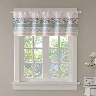 Madison Park Window Valance Tier Set Printed and Pieced Short Drape Rod Pocket Finished Swag for Kitchen or Bathroom, Cotton, Blue, 50 x 18 in