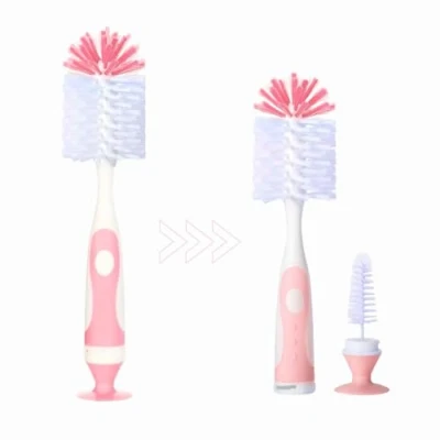 2-in-1 Design: Includes both a full-size bottle brush and a smaller teat brush for nipples, caps, and small bottle parts. SOFT NON-SCRATCH BRISTLES: Effectively remove milk residue without scratching bottles or damaging teats. ERGONOMIC HANDLE: Comfortable, slip-resistant grip ensures easy and efficient cleaning. CONVENIENT SUCTION CUP STAND: Allows the brush to stand upright for hygienic drying and easy storage. BPA-FREE & SAFE: Made from durable, food-grade materials for safe daily use. VERSATILE CLEANING: Suitable for baby bottles, nipples, sippy cups, breast pump parts, and other feeding accessories. HYGIENIC STORAGE: Upright stand keeps the brush off countertops, reducing bacteria buildup. COMPACT & SPACE-SAVING: Perfect for home use, travel, or gifting to new parents. EASY TO CLEAN AND MAINTAIN: Rinse under water or place in sterilizer for maximum hygiene. ESSENTIAL BABY CARE TOOL: Helps parents keep feeding items safe, clean, and ready for use.