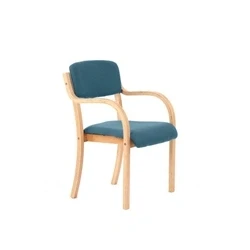 Beech wooden frame. Generous seat and backrest padding. Fixed arms that match the frame. Not Stackable.
