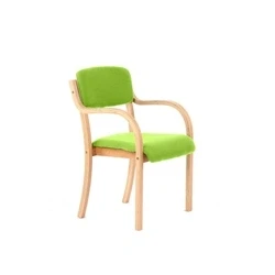 Beech wooden frame. Generous seat and backrest padding. Fixed arms that match the frame. Not Stackable.
