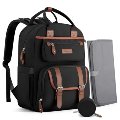 Expandable Large Capacity: Standard size of diaper bag backpack is 12.09*6.24*16.77 inch(23L), and expandable size is 12.09*8.19*16.77(30L). This baby bag has up to 20 pockets, making it easy to hold various items for both the baby and mom. Whether it’s diapers, wet wipes, clothes, bottles, snacks, phones and laptops, they can all fit effortlessly into the main compartment and multiple internal and external pockets. Convenient & Thoughtful: Top handle, padded shoulder strap and stroller clips allow you to carry this baby diaper bag in 3 ways. This diaper backpack is made of waterproof Oxford fabric, ensuring its durability and easy cleaning. The super wide opening allows for easy access to items, and the smooth zippers enable one-handed operation. Insulated Bottle Pocket: The diaper bag for baby features five insulated pockets to keep bottles warm or cold, ensuring your baby can enjoy their beverage at the perfect temperature anytime. The detachable pacifier bag can hold two pacifiers, making it convenient for keeping the pacifiers clean. Multiple Use: This baby boy diaper bag can be used as a backpack, carried by hand, or attached to a baby stroller, making it suitable for various occasions such as shopping and traveling. Its neutral color design makes it suitable for both moms and dads to use. Not only can it be used to carry baby essentials, but it can also be used as a travel backpack or handbag. Ideal Gift: This diaper bag with changing pad is an ideal gift for new moms, breastfeeding moms, or parents of twins, providing convenience for outdoor activities.