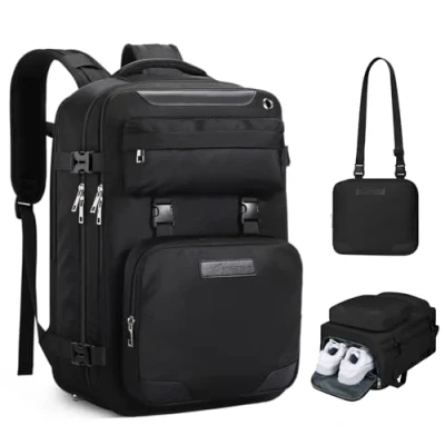 Versatile Shoe Compartment: This travel backpack features a dedicated shoe compartment, keeping your shoes separate and organized. Its breathable design ensures freshness and easy cleaning, making it an ideal choice for a travel backpack or hiking backpack. Enhanced Device Protection: Safeguard your laptop or iPad during travel with the padded compartment in this laptop backpack. It provides reliable protection against bumps and scratches, ensuring the safety of your devices. Airline Approved: Our carry on backpack for airplanes meets airline standards and fits perfectly both under the seat in front of you and in the overhead storage compartment, offering ample space to store all your travel essentials while ensuring it remains compact and lightweight for easy maneuverability. Convenient Travel Features: Enjoy hands-free transportation with the luggage belt that securely attaches the backpack to your carry-on luggage. This lightweight carry on backpack is designed for easy travel and also includes a back anti-theft pocket to keep your valuables safe and secure.The elasticated side pocket of this versatile backpack securely holds water bottles, umbrellas, and other travel essentials. Detachable Crossbody Bag: This waterproof laptop backpack women effortlessly transitions to a stylish crossbody bag, making it suitable for various occasions. Its versatile design caters to different needs and preferences.When using as a crossbody bag, take the interlayper out of the back zipper pocket and attach it to hook-and-loop fastener to avoid rubbing clothing.