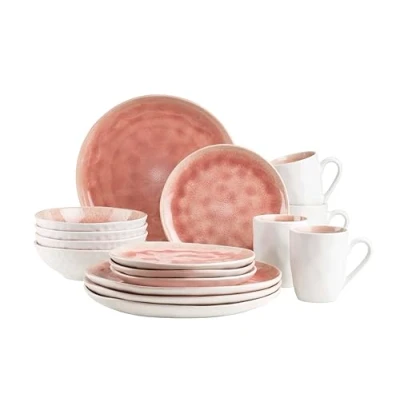 MÄSER 934111 Frozen Series Ceramic Crockery Set for 4 People 16 Piece with Organic Shapes in Berry Speckled Service