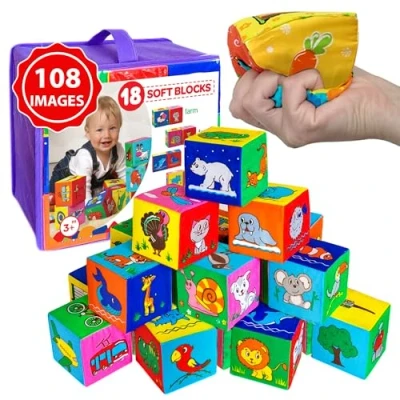 magdum 18 Building Blocks Baby Stacking Soft Toys for Babies Play Shapes 6 months plus Sensory