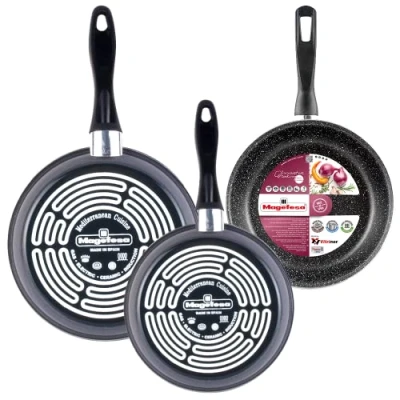 MAGEFESA K2 Gransasso Set of 3 Frying Pans 20/26/28 cm Vitrified Steel Exterior Grey Non Stick Double Layer Stone Effect Suitable for All Hobs Special Induction 50% Energy Saving