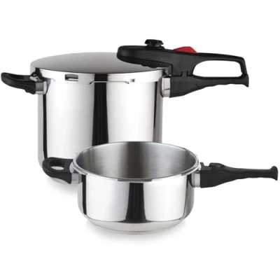 2 cooking levels, 9 psi (organic cooking) 13 PSI (SuperSpeed cooking Ließpen:/All Types Of Cookers Thermal Encapsulated Base for even heat distribution, automatic. Set of 3, 2 pots, 1 lid