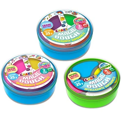 Intelligent super putty for children: the CRAZE Magic Dough intelligent super clay is the new great fun with fun factor. The super clay is extremely elastic, very easy to mould, bounces like a bouncy ball, and shatters. The intelligent super clay from CRAZE can not only be kneaded and shaped, but also cut and tear. The clay remains supple and does not dry out. The CRAZE Magic Double Twist, mix the colours. Magic Double Twist intelligent clay contains 3 to 4 different colours sorted in a practical 35 g tin with transparent lid. Magic Double Twist children's clay is available in 7 different variants for even more kneading and playing fun. Pre-selection not possible. Let yourself be surprised and collect all variants! Children's clay in the highest CRAZE premium quality: the original Magic Dough is made according to the German formula, without toxins or dangerous ingredients for children. Safe to use as well as BPA and gluten free. The magic clay tin can be taken anywhere - to the office, restaurant, to meet friends. It is also a great pastime for home. Contents: 3 practical 35 g children's clay cans with 3 to 4 different coloured kneads. For creative play: promote the creativity of your little ones with clay. The intelligent clay promotes coordination, fine motor skills and imagination., Manufacturer: CRAZE