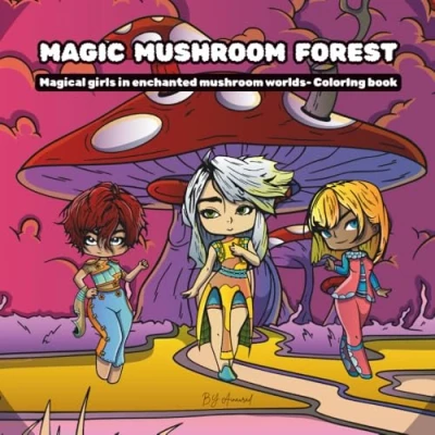 Magic mushroom forest: Magical girls in enchanted worlds coloring book
