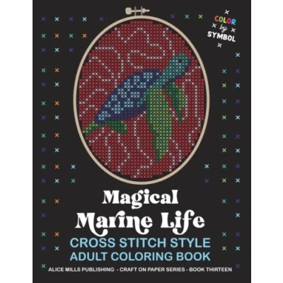 Magical Marine Life: Cross Stitch Style Adult Coloring Book Color by Symbol (Alice Mills Premium Paper)
