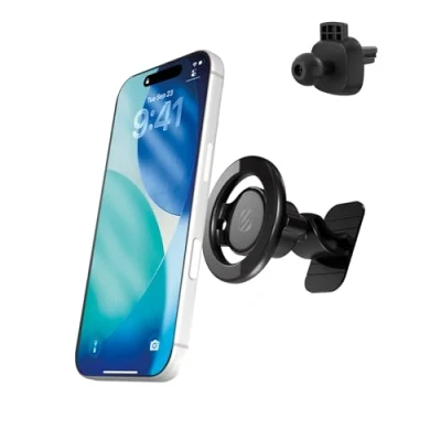 Designed for MagSafe: The built-in MagSafe magnets on our car phone mount provide a secure magnetic hold for Apple iPhone 16/15/14/13/12/Pro/Pro Max/ Plus/Mini, Mag Safe case, and other MagSafe accessories. Each phone holder includes a Magic Ring adapter for seamless conversion of iPhone X, 11, SE, and Android phones, ensuring universal compatibility. 2-in-1 MagSafe Car Mount: Choose your ideal mounting method with our versatile hands-free magnetic cell phone holder. Opt for the dash mount, secured with automotive-grade adhesive for a firm hold, or the vent clips, which fit most car air vents and are easy to install, remove, and transfer between vehicles. This phone stand seamlessly adapts to your needs. Strong Magnets: Experience unwavering stability with our MagSafe phone holder, whether using the dash mount or the vent clip in your car vent. The circle of Neodymium magnets aligns perfectly with your MagSafe iPhone, offering peace of mind and a reliable magnetic grip that ensures your phone mounts firmly in place, even on the bumpiest rides. 360 Degree Rotation: Our Scosche MagSafe mount for car dash or vent features an adjustable lock nut for effortless 360-degree rotation. Whether mounting the magnetic cell phone holder on the dashboard or the car vent, easily rotate your phone for hands-free navigation and app usage ensuring your focus remains on the road. Buy With Confidence: Embrace the convenience of MagSafe technology with our 2-in-1 magnetic phone mount for car, complete with MagicMount Select mount head, MagSafe dash mount base, MagSafe vent mount base, MagicRing adapter, and an alcohol cleaning wipe. Backed by Scosche's Lifetime Tech support and 1-Year Limited Warranty.