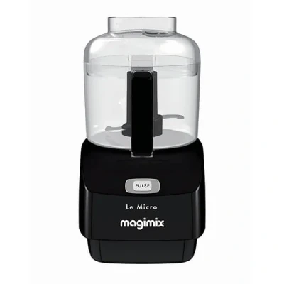 The Magimix Le Micro Mini Chopper in black is simple and effective, allowing you to chop, blend, puree and liquidise at the touch of a button.Accessories included with the Le Micro -Sabatier stainless steel bladeBPA- and ABS-free emulsifying bladeBPA- and ABS-free 800ml bowl and lidRecipe bookFor your safety the Le Micro will only operate if the bowl and lid are correctly locked into position.Detachable parts are dishwasher safe.Dimensions: H 240mm x L 120mm x D 170mm.Made in France.The Magimix Le Micro mini chopper is Good Houskeeping approved and supplied with a 3 year Magimix guarantee.