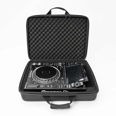 PROTECTION: Lightweight hard shell case with Durashock moulded EVA shell and water-rejecting polyester exterior for optimal CDJ-3000X/CDJ-3000 protection. INTERIOR DESIGN: Features protective EVA inlay with high-density EVA and egg-crate foam padding to safeguard display, jog wheels, and faders. STORAGE: Dedicated cable storage compartment and compatibility with Decksaver cover for comprehensive equipment organisation. DIMENSIONS: Exterior measurements of 50.5 x 40 x 15 cm with interior space of 33 x 43 x 12 cm, weighing 1.65 kg. PORTABILITY: Equipped with sturdy zipper, comfortable carrying handles, and shoulder strap with metal hooks for secure transport.