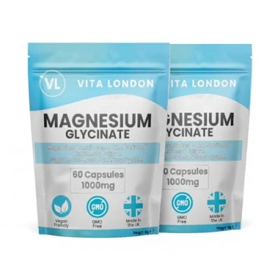 ✅MAGNESIUM GLYCINATE SUPPLEMENT 1000mg: Also known as Biglycinate or Diglycinate. Our Chelated Magnesium sleep supplements ensure optimal dosage, bioavailability and effectiveness. ✅MAGNESIUM HEALTH BENEFITS: Supports the Muscle & Nervous System and helps with the reduction of tiredness & fatigue. Also often referred to as the sleep supplement. 180mg Elemental Magnesium. ✅HIGH STRENGTH MAGNESIUM: Each pouch contains 60 vegan capsules. The 2 capsule daily serving offers an affordable 1 month supply. Magnesium glycinate (aka biglycinate or diglycinate) acts as an ideal complement to magnesium threonate or magnesium taurate. ✅VEGAN, GMO, GLUTEN FREE: Fully recyclable and resealable pouches keep your capsules (not tablets or gummies) fresh while being better on the environment and letter box friendly so you don’t miss a delivery. We use Organic Brown Rice Powder as an excipient keeping our supplements vegan and gluten free. ✅MADE IN THE UK: Our products are researched, tested and produced in ISO compliant UK labs. Our science backed formula can assist overall calmness as well as those with restless legs or looking for magnesium supplements high strength.