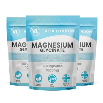 ✅MAGNESIUM GLYCINATE SUPPLEMENT 1000mg: Also known as Biglycinate or Diglycinate. Our Chelated Magnesium sleep supplements ensure optimal dosage, bioavailability and effectiveness. ✅MAGNESIUM HEALTH BENEFITS: Supports the Muscle & Nervous System and helps with the reduction of tiredness & fatigue. Also often referred to as the sleep supplement. 180mg Elemental Magnesium. ✅HIGH STRENGTH MAGNESIUM: Each pouch contains 60 vegan capsules. The 2 capsule daily serving offers an affordable 1 month supply. Magnesium glycinate (aka biglycinate or diglycinate) acts as an ideal complement to magnesium threonate or magnesium taurate. ✅VEGAN, GMO, GLUTEN FREE: Fully recyclable and resealable pouches keep your capsules (not tablets or gummies) fresh while being better on the environment and letter box friendly so you don’t miss a delivery. We use Organic Brown Rice Powder as an excipient keeping our supplements vegan and gluten free. ✅MADE IN THE UK: Our products are researched, tested and produced in ISO compliant UK labs. Our science backed formula can assist overall calmness as well as those with restless legs or looking for magnesium supplements high strength.