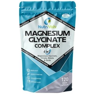 QUADRUPLE POWER - Our special 4-in-1 formula includes Magnesium Glycinate + Citrate + Malate + Oxide - Each serving packs a high-strength dose of 1900mg (446mg Elemental Magnesium, 119% NRV). Our magnesium supplement ensures optimal dosage and maximum effectiveness. Each pack contains 120 vegan capsules which will last between 2 to 4 months. BENEFITS GALORE - Unravel the potential of NutriVolv's Magnesium Complex, a sophisticated blend to help support sleep, muscle relaxation & bone health whilst also boosting energy and reducing fatigue. In addition, our blend promotes digestion and mineral absorption to improve overall wellbeing. Our science backed formula is also perfect for overall calmness as well as those with restless legs. DIVERSE SUITABILITY - NutriVolv's Magnesium Complex is diverse and is suitable for all individuals looking to boost their daily magnesium intake. Whether you're an athlete looking to support bone maintenance or an individual who simply wants to maintain overall health, our 4-in-1 magnesium supplement has you covered. With its super strength formulation and easy-to-swallow capsules, it's a perfect and easy way to ensure you're meeting your magnesium needs and feeling the best version of yourself everyday. 100% VEGAN - We like to be inclusive here at NutriVolv which is why our Magnesium Complex is Vegan Friendly, Gluten-free, Dairy-free, Cruelty-free, Soy-free and sugar free. We fully understand the importance of providing supplements that caters to everyone's needs where possible, are sourced & produced ethically and most importantly at an affordable price.