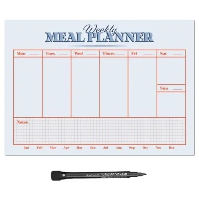 ALWAYS STAY ORGANISED. Our magnetic meal planner and shopping lists are an easy, stylish and convenient way to plan your meals out for the week. PLAN MEALS FOR AN ENTIRE WEEK. Never again worry about finding something to eat or figuring out what to make for dinner, with this magnetic meal planner everyone in your household will know what’s on the menu. IDEAL REMINDER. This convenient space to plan your weekly meals each sheet also has a shopping list to ensure you know what to get when you are next at the store. EASY TO CLEAN. Write down using dry wipe pens, any lists, notes, memos, reminders and plans you have for the week of meals ahead. Better yet it’s easy to clean up and erase old meals and notes with our premium dry wipe surface. PEN INCLUDED. A black whiteboard marker pen is included with each printed magnetic sheet.