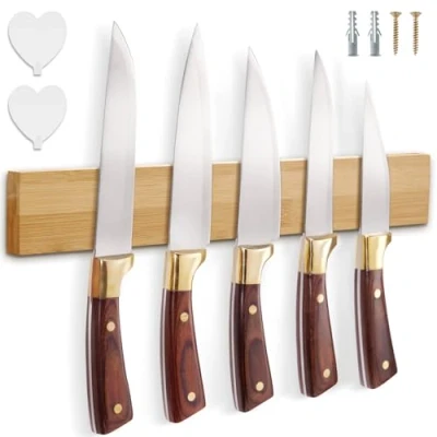 Magnetic Knife Rack Wall Mounted Strip in Bamboo with Extra Strong Magnet 40 X 6 2CM, Stand for Wall, Holder Utensils and Tools