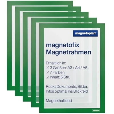 Quick and flexible presentation of messages. Our product is equipped with a matte, anti-glare film that optimally protects your documents and documents and gives them the appropriate frame. It provides the perfect solution for your presentation needs and comes in a pack of 5. Matte, low-glare viewing window for optimal protection. The viewing window is equipped with a matte, low-glare film that provides ideal protection for your documents. The practical A4 size allows for easy handling and versatile use. The green frames give a fresh look and make eye-catching presentations. Pack of 5 for individual applications. Our product comes in a packaging unit of 5 pieces, which offers you flexible uses. Whether for presentations, displays or displays - with our viewing windows you are always optimally equipped. Fresh look and eye-catching presentation with green frameThe green frames give your documents a fresh look and provide an eye-catching presentation. This will attract even more attention and professionally present your messages and documents. Easy to use and versatile use in DIN A4 format. Our product in DIN A4 format allows for easy handling and versatile use. Improve your presentations and documents now with the magnetoplan | Magnetofix viewing window and leave a lasting impression!