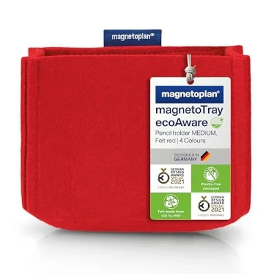 magnetoplan magnetoTray ecoAware, Red Magnetic Desk Organiser Made of 100% PET Felt, W x H D 130 100 60 mm, Pen Holder for Office Supplies, Box, Recycled Bottles