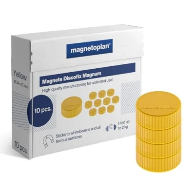 magnetoplan Premium Magnete Discofix magnum ØxH 34x13mm 10 Stück, gelb Haftkraft: 2 kg für Magnettafeln und Whiteboards Kratzfreie Spezialbeschichtung Leicht abnehmbar